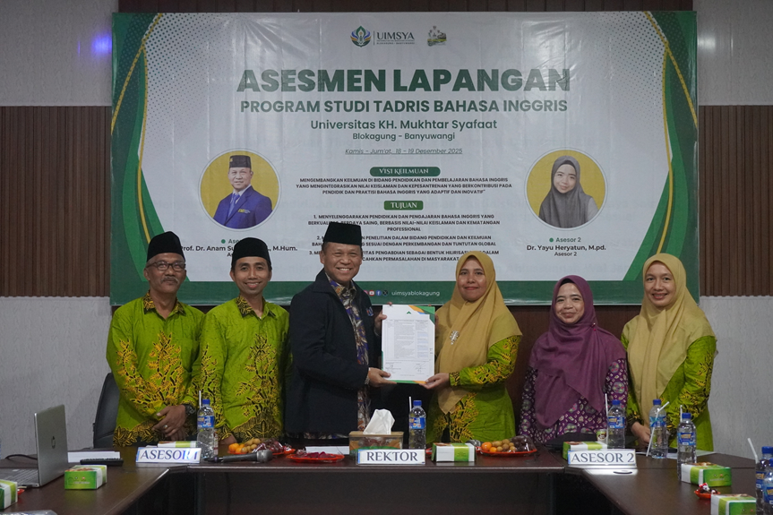 BANYUWANGI – Fakultas Tarbiyah dan Keguruan (FTK) Universitas KH. Mukhtar Syafaat Blokagung melaksanakan Asesmen Lapangan (AL) Program Studi Tadris Bahasa Inggris oleh Lembaga Akreditasi Mandiri Kependidikan (LAMDIK) pada Kamis–Jum’at, 18–19 Desember 2025 bertempat di Kampus 2 UIMSYA. Kegiatan ini merupakan bagian dari proses akreditasi program studi sebagai upaya penjaminan dan peningkatan mutu pendidikan tinggi kependidikan.