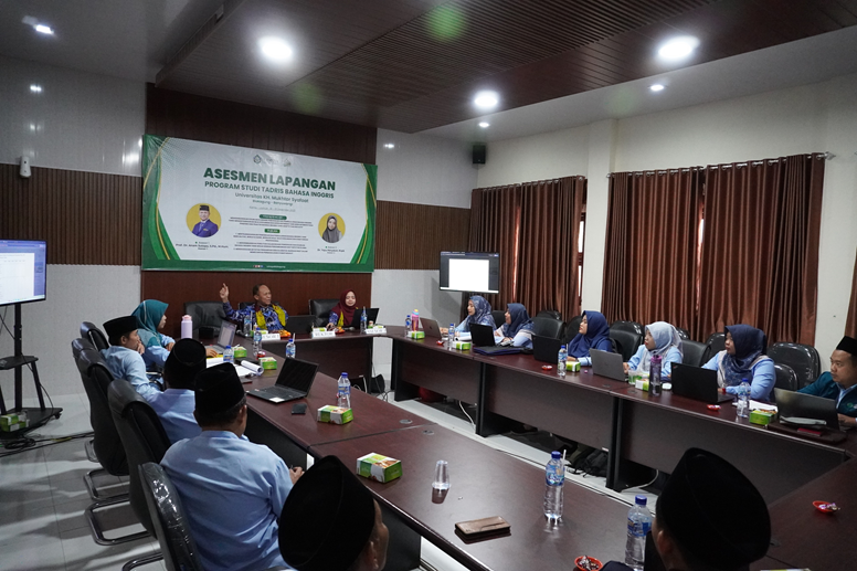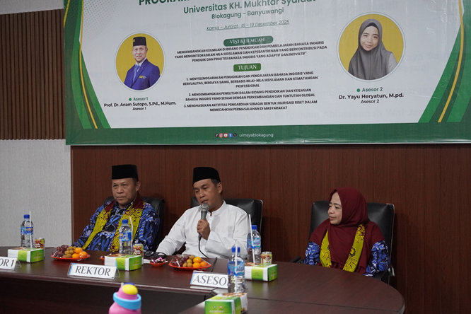 Kegiatan asesmen lapangan diawali dengan pembukaan dan sambutan Rektor Universitas KH. Mukhtar Syafaat Blokagung Banyuwangi, Dr. KH. Ahmad Munib Syafaat, Lc. M.E.I. Dalam sambutannya, Rektor menyampaikan bahwa asesmen lapangan merupakan bagian penting dalam evaluasi mutu institusi dan program studi. “Asesmen lapangan ini menjadi momentum evaluasi dan refleksi bagi kami untuk terus meningkatkan kualitas tata kelola dan penyelenggaraan pendidikan, khususnya pada Program Studi Tadris Bahasa Inggris,” ujarnya.