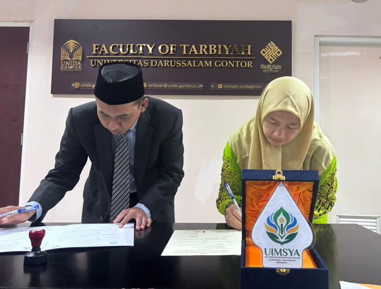 Sementara itu, Dekan Fakultas Tarbiyah UNIDA Gontor, Assoc. Prof. Dr. Ihwan Mahmudi, M.Pd., menyambut baik kerja sama tersebut dan menegaskan pentingnya sinergi antarperguruan tinggi. “Kami menyambut FTK UIMSYA dengan penuh apresiasi. Kolaborasi ini sejalan dengan komitmen UNIDA Gontor untuk membangun jejaring akademik yang saling menguatkan, khususnya dalam pengembangan pendidikan bahasa dan karakter keislaman,” tuturnya.